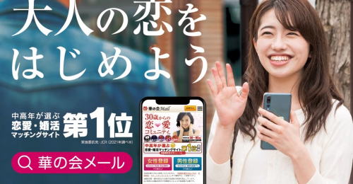 華の会メールは40代から60代をターゲットにしたマッチングサイトです。同年代同士の恋人探しに適しており、落ち着いた出会いが期待できるのが特徴です。