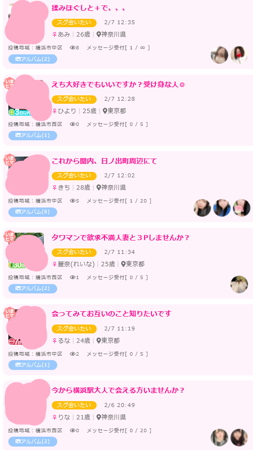 初心者のかたは「誘い飯掲示板」からお相手を探しましょう。アダルト掲示板は援交娘や援デリ業者が多く紛れ込んでいます。
